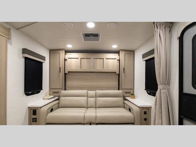 Each travel trailer will have you feeling right at home with its hidden hinge cabinet doors, plus solid surface kitchen countertops and roller shades for added privacy. The Showermiser water saving system is sure to come in handy while camping over the weekend, and the TV with a stereo ensures you'll never go bored. Towing is made hassle-free thanks to the power tongue jack, along with Dexter Torflex axles and Goodyear Endurance tires.