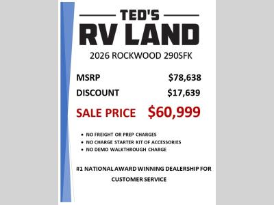 Ted's RV Land is not responsible for any misprints, typos, or errors found in our website pages. Any price listed excludes sales tax, registration tags, and delivery fees. Manufacturer pictures, specifications, and features may be used in place of actual units on our lot. Please contact us @320-243-3288 for availability as our inventory changes rapidly. All calculated payments are an estimate only and do not constitute a commitment that financing or a specific interest rate or term is available.
