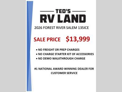 Ted's RV Land is not responsible for any misprints, typos, or errors found in our website pages. Any price listed excludes sales tax, registration tags, and delivery fees. Manufacturer pictures, specifications, and features may be used in place of actual units on our lot. Please contact us @320-243-3288 for availability as our inventory changes rapidly. All calculated payments are an estimate only and do not constitute a commitment that financing or a specific interest rate or term is available.