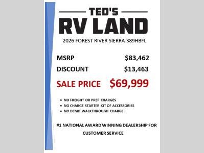Ted's RV Land is not responsible for any misprints, typos, or errors found in our website pages. Any price listed excludes sales tax, registration tags, and delivery fees. Manufacturer pictures, specifications, and features may be used in place of actual units on our lot. Please contact us @320-243-3288 for availability as our inventory changes rapidly. All calculated payments are an estimate only and do not constitute a commitment that financing or a specific interest rate or term is available.