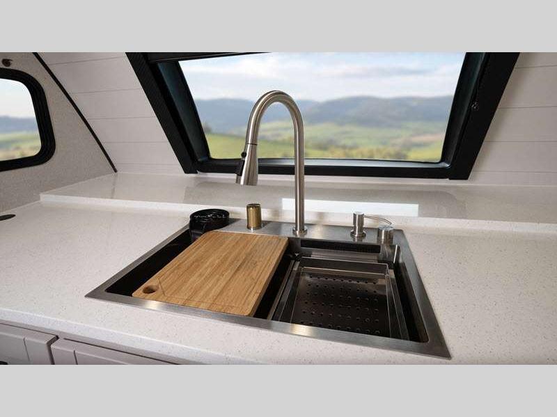 You will love the seamless countertops throughout, along with the stylish interior and the new InVision appliance package. A 13,500 BTU roof.mounted Quiet Series A/C will keep you comfortable, while the MaxxAir vent fan in bathroom and living room allows for even more comfort, and the on-demand water heater means everyone can freshen up before bed. Each model is constructed with a Magnum Truss roof system and Stronghold VBL walls with double-sided Azdel composite, so you can plan to enjoy your Jay Feather for years to come.