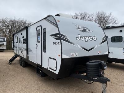 The Jayco Jay Flight SLX travel trailer is quite easy to own because it is lightweight for an easier towing experience. Built on a fully integrated A-frame with galvanized-steel, impact-resistant wheel wells, the Jay Flight SLX has quality at its very foundation. That quality continues on to the electric self-adjusting brakes, easy-lube hubs, Magnum Truss roof system, and LP quick connect. Some of what the mandatory Customer Value Package includes is backup camera prep, Keyed-Alike entry and baggage doors, and an on-demand tankless water heater.