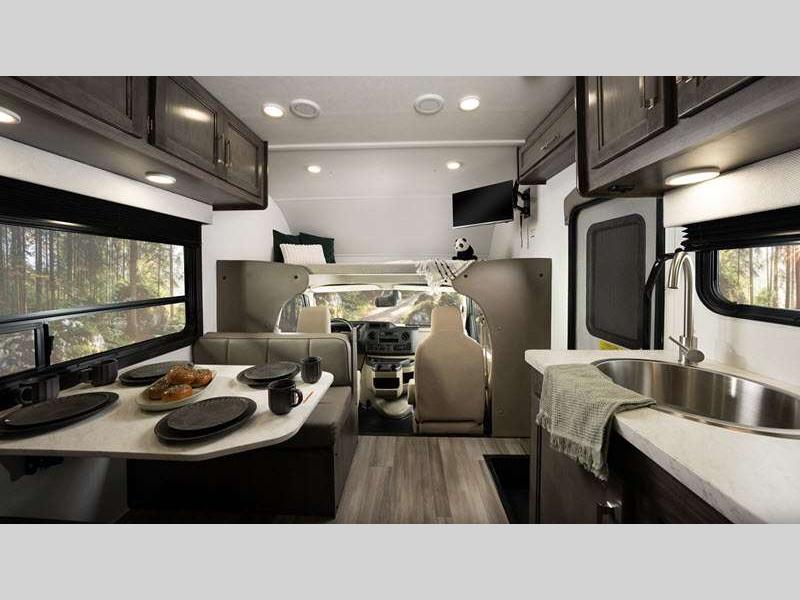 This entry-level Class C coach is perfect for all your travel and camping needs. The heating pads on the holding tanks help maintain functionality in colder weather, making late season camping more comfortable and worry-free, and the 4,000W generator will keep you powered up. There is also a durable Tufflex PVC laminated roof and Stronghold VBL roof, floor, and sidewall construction. Inside, you'll enjoy pleated blackout shades, high-intensity, recessed LED ceiling lights, an 84" ceiling height, and many more comforts.