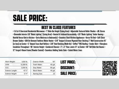 Ted's RV Land is not responsible for any misprints, typos, or errors found in our website pages. Any price listed excludes sales tax, registration tags, and delivery fees. Manufacturer pictures, specifications, and features may be used in place of actual units on our lot. Please contact us @320-243-3288 for availability as our inventory changes rapidly. All calculated payments are an estimate only and do not constitute a commitment that financing or a specific interest rate or term is available.