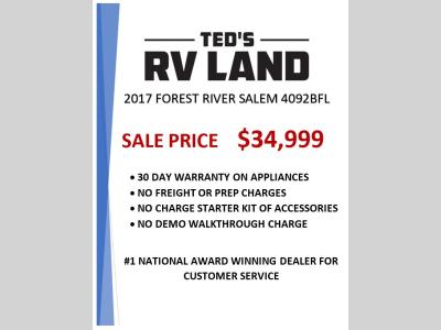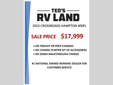 Ted's RV Land is not responsible for any misprints, typos, or errors found in our website pages. Any price listed excludes sales tax, registration tags, and delivery fees. Manufacturer pictures, specifications, and features may be used in place of actual units on our lot. Please contact us @320-243-3288 for availability as our inventory changes rapidly. All calculated payments are an estimate only and do not constitute a commitment that financing or a specific interest rate or term is available.
