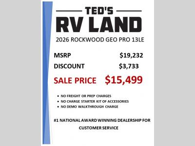 Ted's RV Land is not responsible for any misprints, typos, or errors found in our website pages. Any price listed excludes sales tax, registration tags, and delivery fees. Manufacturer pictures, specifications, and features may be used in place of actual units on our lot. Please contact us @320-243-3288 for availability as our inventory changes rapidly. All calculated payments are an estimate only and do not constitute a commitment that financing or a specific interest rate or term is available.