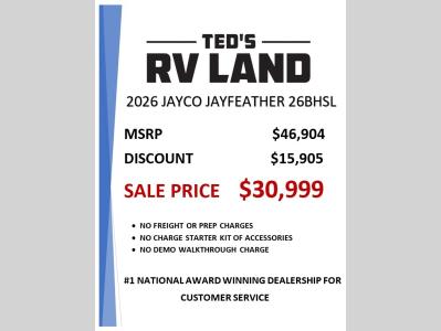 Ted's RV Land is not responsible for any misprints, typos, or errors found in our website pages. Any price listed excludes sales tax, registration tags, and delivery fees. Manufacturer pictures, specifications, and features may be used in place of actual units on our lot. Please contact us @320-243-3288 for availability as our inventory changes rapidly. All calculated payments are an estimate only and do not constitute a commitment that financing or a specific interest rate or term is available.