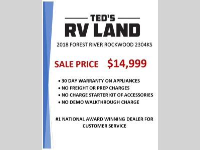 Ted's RV Land is not responsible for any misprints, typos, or errors found in our website pages. Any price listed excludes sales tax, registration tags, and delivery fees. Manufacturer pictures, specifications, and features may be used in place of actual units on our lot. Please contact us @320-243-3288 for availability as our inventory changes rapidly. All calculated payments are an estimate only and do not constitute a commitment that financing or a specific interest rate or term is available.