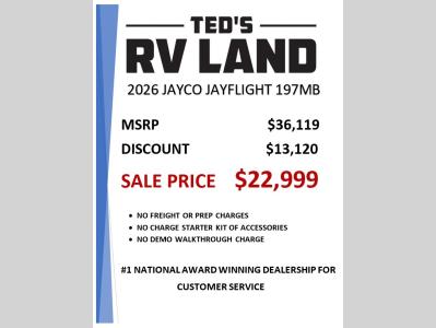 Ted's RV Land is not responsible for any misprints, typos, or errors found in our website pages. Any price listed excludes sales tax, registration tags, and delivery fees. Manufacturer pictures, specifications, and features may be used in place of actual units on our lot. Please contact us @320-243-3288 for availability as our inventory changes rapidly. All calculated payments are an estimate only and do not constitute a commitment that financing or a specific interest rate or term is available.