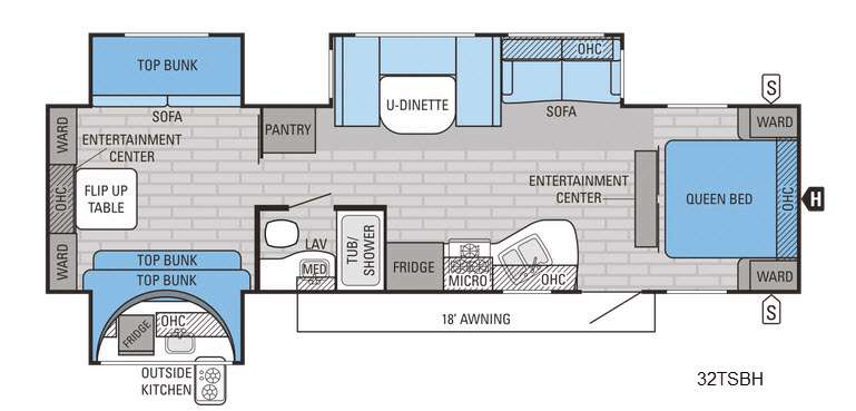 There is so much space inside the 32TSBH Jay Flight travel trailer by Jayco! Since this trailer has a rear bunk house your kids can bring along a friend, or your guests can have their own space.